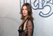 Hailey Bieber deslumbra con un look “espejo” inspirado en Margot Robbie: encaje negro y transparencias