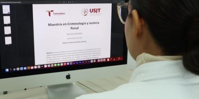 Ciudad Victoria, Tamaulipas.– Como parte de su oferta académica, la Universidad de Seguridad y Justicia de Tamaulipas (USJT) aperturó la inscripción a sus dos maestrías en línea: la primera en Criminología y Justicia Penal; y la segunda en Desarrollo de Políticas Públicas en Materia de Seguridad.