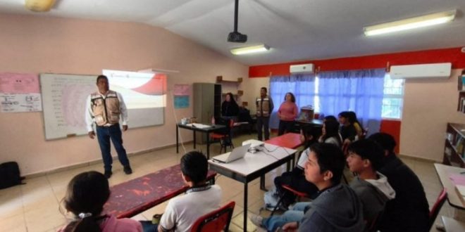 Altamira, Tamaulipas.— Como parte de las acciones permanentes de divulgación y fomento a la pesca responsable, personal de la Subsecretaría de Pesca y Acuacultura, en coordinación con oficiales federales de Pesca de la Comisión Nacional de Acuacultura y Pesca (CONAPESCA), impartieron una plática de concientización a alumnas y alumnos de la Escuela Telesecundaria “Profesora Eusebia Banda Sevilla”, ubicada en el ejido Martín A. Martínez, municipio de Altamira.