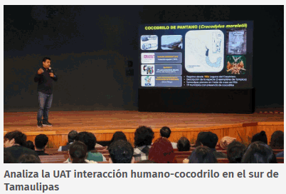 « La Universidad Autónoma de Tamaulipas (UAT) llevó a cabo la conferencia “Problemática de las interacciones humano–cocodrilo en Tamaulipas: percepción del riesgo, conducta humana y comunicación social», un espacio de reflexión académica que vinculó el conocimiento científico con los desafíos sociales y ambientales del entorno regional. «