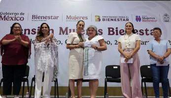 La Presidenta de México, Claudia Sheinbaum Pardo, encabezó la entrega de tarjetas de la Pensión Mujeres Bienestar en Felipe Carrillo Puerto, Quintana Roo —entidad donde casi 30 mil mexicanas reciben este apoyo— donde destacó que las mujeres mayas son pioneras en la lucha por los derechos de los pueblos originarios y de todas las mujeres, a través de personajes como Elvia Carrillo Puerto y Rita Cetina.