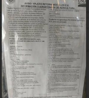 Un oficial de la Oficina de Adunas y Protección Fronteriza de Estados Unidos (CBP por sus siglas en ingles), hizo saber a un operador de camión de carga que el cruce de alimentos para consumo está restringido, es decir no todo se puede pasar y debe declararse.