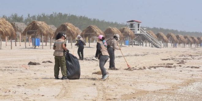 Como parte de estas acciones, brigadistas del Programa de Empleo Temporal del poblado La Pesca, en coordinación con personal de la Dirección de Recursos Naturales y Manejo de Áreas Naturales Protegidas, realizaron labores de separación de sargazo y residuos sólidos, con el objetivo de garantizar su manejo adecuado y evitar afectaciones al entorno marino.