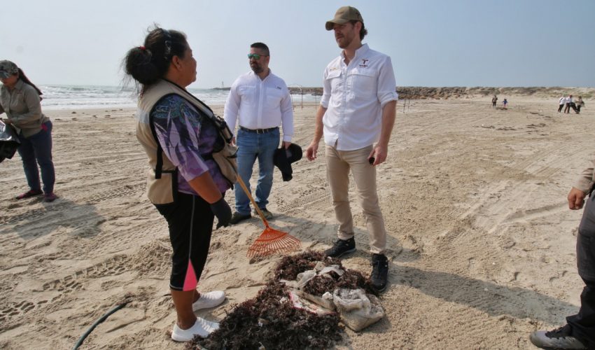 La Pesca, Soto la Marina, Tamaulipas.– Con el propósito de apoyar a las comunidades que dependen de la pesca y el turismo, así como preservar la riqueza natural de las costas tamaulipecas, el Gobierno del Estado, a través de la Secretaría de Desarrollo Urbano y Medio Ambiente (SEDUMA), fortalece las acciones de limpieza, separación y disposición adecuada del sargazo y residuos sólidos en municipios costeros.